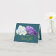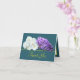 Belo buquê com asteria roxa e montes de rosas brancas contra fundo aqua verde. O texto de saudação de cor amarela usa uma fonte de tipografia de script atraente. As flores cobrir a frente deste cartão que pode ser usado como cartões de agradecimentos, cartão de aniversário ou qualquer outro cartão de sua escolha. Personalize-o com o seu texto e/ou imagens para torná-lo de um tipo!