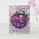 O buquê bonito do dia das mães das flores azuis, cor-de-rosa, roxas e brancas com bordadura preto e branco floresce.