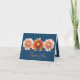 Três lindas flores cor-de-coral, rosa, e dahlia laranja, são colocadas sobre um fundo de cor azul. O texto cor-de-rosa usa uma fonte de tipografia de script atraente. As flores cobrir a frente deste cartão que pode ser usado como cartões de agradecimentos de casamento, cartão de aniversário ou qualquer outro cartão de sua escolha. Personalize-o com o seu texto e/ou imagens para torná-lo de um tipo!