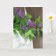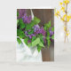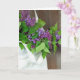buquê lilás no saco de musselina pendurado em madeira de penas