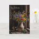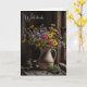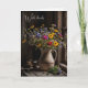 Buquê de flor silvestre colorido em um velho jarro, perto de uma janela de uma fazenda para te obrigado. Todo texto é editável.