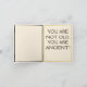 " Seus resultados do namorando C14 estão em… "dizem o primeiro lado deste cartão de aniversário engraçado, contudo elegante, em caráteres dourados académicos sérios em um profundo morno - fundo marrom. A piada é terminada quando você a abre: "você não é idoso, você é antigo!". Este cartão engraçado é perfeito para um arqueólogo ou um amigo do antropólogo com um grande sentido de humor!