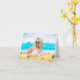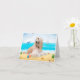 Um cão aficionado sentado na praia é uma ideia perfeita de presente para alguém que ama esta raça de cães.