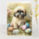Cartão Cachorro Apso Lhasa com Feriado de Ovos de Páscoa