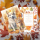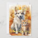Aceite o calor da estação com o nosso cartão de Ação de Graças! Apresentando um carinhoso cão branco e gatinho no meio do esplendor do outono, é a maneira perfeita de expressar gratidão. Com o "Feliz Dia de Ação de Graças" na frente e um dentro de mensagem personalizável, você pode compartilhar sua sincera apreciação. Compartilhe o amor desta Ação de Graças!"