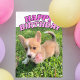 Este cartão de aniversário bonito Pembroke Welsh Corgi, cor-de-rosa, apresenta um belo cachorrinho sob as palavras Feliz Aniversário em caracteres bonitos.