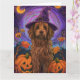 Abraçar o espírito do Dia das Bruxas com esta design encantadora que apresenta um cachorro fofo num chapéu de bruxa rodeado por abóboras entalhadas. Perfeito por adicionar um pouco de charme assustador às suas comemorações festivas.