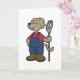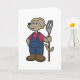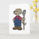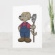 Cartão Cachorro como Fazendeiro com Ancinho e Chapéu