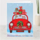 Cartão Cachorro De Goldendoodle No Carro Com Papai Noel