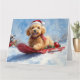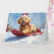 Cartão Cachorro de Goldendoodle no Sledge Deixe-o nevar n