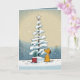 Cão de Natal com árvore de Natal em flocos de neve