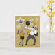Celebre seu aniversário de marco em estilo e finja seus vinte e um de novo! Um design divertido com Cachorro Dotty, o dalmata, dança de pai, e seu Gatinho amigo felino, champanhe de bebendo e rodeado por balões, sobre fundo de ouro.