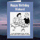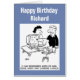 Um cão está sentado num computador a jogar um jogo e o seu dono comenta que se lembra de quando estava muito feliz a perseguir um pau. Engraçado desenho de um cachorro brincando no computador. O cartão de aniversário serviria a um dono de cachorro.
