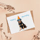 Feliz aniversário! Este cartão de aniversário fofo Rottweiler é perfeito para qualquer amante de cachorro, jovem ou velho. Celebre o dia especial do seu amado com este design adorável. Este design inclui um cão rottweiler com aquarela vestindo um chapéu de aniversário, assim como as palavras "Parabéns" com letra azul. Aproveite este cartão de aniversário de cachorro!