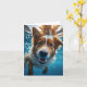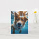 Cartão Cachorro Marrom e Branco Fofo Nadando Debaixo d'Ág