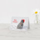 Imagem humorística de um cachorro preto e branco manchado na neve usando um chapéu de Papai Noel e um laço; com desejo de Feliz Natal; adicione seu próprio texto dentro!