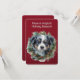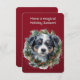 A maneira mais bonita de enviar Cartões de natal para seus amigos e família. Um pequeno rosto de filhote entre uma coroa de Natal com mensagem nas costas.