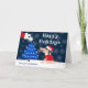 Este cartão de feriado é para o seu animal de estimação sentado, a andar de cão, ou qualquer negócio relacionado com animais de estimação. Um pequeno cachorro em uma roupa de Papai noel está sentado na neve enquanto Papais noeis colocam uma estrela sobre uma árvore de Natal azul com luzes azuis. Há flocos de neve caindo. O texto da frente diz "Feliz Feriados" e abaixo diz "da sua babá de estimação." Todo texto é totalmente personalizável.