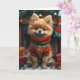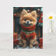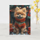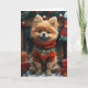 Cartão Cachorro Pomerano com Lareira de presentes de Nata