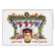 A frente deste cartão de saudação de Natal tem uma imagem de um adorável cão Pomerano vestindo um chapéu de Papai Noel vermelho e branco. O cachorro se senta em frente a uma lareira decorada, esperando expectativa por Papai Noel. O texto vermelho no fundo diz "Esperando por Papais noeis". O texto é personalizável, assim como todo o texto dentro, então você pode fazê-lo dizer o que quiser. Bonita! Veja mais imagens de Pom, junto com dezenas de outros produtos da raça canina, na Vila dos Cães.