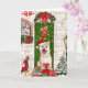 Cachorro Shiba Inu Natal sentado fora de casa decorada com coroa de Natal, árvore de Natal é uma ideia perfeita de presente de Natal para amantes de cães.