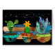 Um trio encantador de cacto e plantas suculentas se senta em potes coloridos antes de um pano de fundo de pincéis de cobre e de aquarela azul. O fundo do cartão é preto, de modo que os florais mostram as suas cores com brilho. O dentro de saudação personalizável que o cartão diz, "Você traz alegria à minha vida." Também disponível com fundo branco.