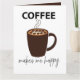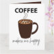 Café me faz feliz design de Nisha Prabhu com cartão de café original. Para todos os amantes do café lá fora, este cartão delicioso é uma pequena dose de alegria! Apresentando uma design caprichosa que captura a essência daquela pitada perfeita, é a maneira perfeita de compartilhar seu amor por café com amigos, família ou alguém especial. Seja aniversário, feriado, ou só porque, este cartão vai iluminar o dia de qualquer um! Ideal para entusiastas de café e amigos! Traga um sorriso para o rosto de alguém e deixe-os saber que café realmente torna a vida um pouco mais doce. Perfeito para doar ou manter à mão para qualquer ocasião. Pegue o seu hoje e espalhe a felicidade!