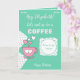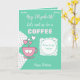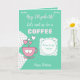 Personalize este cartão de saudação de aniversário com um nome e altere o outro texto, se preferir. Projetado em rosa e verde com uma xícara de café, bolinhas e corações amorosos. Trate seu melhor amigo para um café.