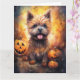 Cartão Cairn Terrier de Halloween com Abóboras Assustador
