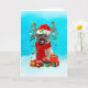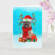 cairn terrier se divertindo na neve com presentes de Natal vestindo chapéu do Papai Noel e com luzes de Natal é uma ideia de presente perfeita para alguém que ama esta raça de cão
