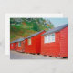 Uma fileira de galpões vermelhos na ilha de Jersey, Ilhas do Canal.