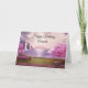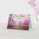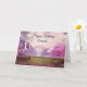 Cartão de saudação com uma imagem cênica de um lago roxo pacífico. Cercados por cerejeiras e cachoeiras.