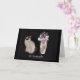 Um gato calico e um vaso cheio de orquídeas em fundo preto estão representados neste adorável cartão de compaixão