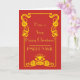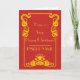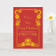 Cartão de Natal de caligrafia Art Déco / Art Nouveau vermelho e dourado elegantemente estiloso. Letras douradas e bordas ornamentadas em fundo vermelho. Todo o texto na frente e no interior pode ser facilmente editado para uma mensagem de sua escolha usando o texto do modelo. Personalize este cartão de declaração elegante neste Natal.