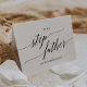 Esta elegante caligrafia negra ao meu cartão do padrasto é perfeita para um casamento simples. A design neutra apresenta uma carta minimalista decorada com tipografia romântica e caprichosa.