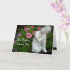O cartão com imagem de uma estátua de Buddha nestled entre flores cor-de-rosa e a folha verde. Seja paz, paz esteja dizendo na parte dianteira.