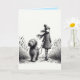 Ilustração doce de uma jovem menina caminhando com o cachorro, este cartão será apreciado por qualquer amante de cães!