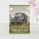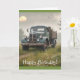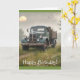Este cartão de aniversário apresenta um velho caminhão de fazenda vintage em uma manhã enevoada no prado.