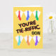 Você é Tie-Riffic Son. Camisas brancas e gravatas soprando no vento decoram o cobrir deste cartão de saudação de Dia de os pais para um filho. Arte, imagem e direitos de autor versos © Shoaff Ballanger Studios, 2024.