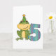 Se você ama sapos, vai adorar nossas camisetas de aniversário do 5 do Partido, roupas de cama, sacos de tote, botões de aniversário e mais o quinto aniversário especial! Possui um sapo verde vestindo um chapéu de partido pontilhado de polka verde e um grande número de striped azul 5!