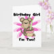 Meninas T-shirts segundos aniversários, fatos-chave, cartas, autocolantes, ímanes, bolsas e mais, com um macaco-macaco bonitinho e flores cor-de-rosa, com texto que diz "Rapariga de Aniversário, Eu sou Dois!".