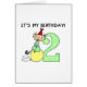 Bonita segundo aniversário Figura com uma figura de palitos vestindo uma festa que se senta num balão e que diz: "É o meu aniversário!". Possui um grande número 2!
