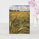 Esta carta de vazio de fotografia de arte apresenta uma paisagem cênica de verão de um campo de ouro amadurecido, grãos castanhos e amarelos, quase prontos para colheita. As fazendas e os celeiros estão muito distantes. As pedras estão soprando no vento para formar um adorável padrão de abstrato.