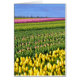 Coloridas linhas de tulipas no campo com céu azul em fundo
