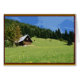 Fotografia de uma cabana e um campo de flores no campo perto de Bohinj, Eslovênia. A foto é passada através de um filtro do Photoshop para dar-lhe o efeito de um impressão com serra.