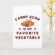 Design de Halloween engraçado mostrando caricaturas engraçadas de candy corn e o ditado "Candy Corn é meu vegetal favorito". Uma ideia perfeita para a celebração de Halloween, bem como para uso diário.