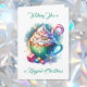Cartões de Natal personalizados. Uma bela representação em aquarela de uma xícara caprichosa de chocolate quente coberta com creme chantilly e confeitos com um bastão de doce saindo.