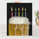 cerveja transbordando em caneca de vidro com velas de aniversário seguidas