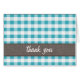 O sul do país inspirou Cartões de agradecimentos desenhado com "obrigado você" em branco sobre uma ilustração de textura de canvas marrom, em um padrão de turquesa e gingham branco. O dentro é personalizado com sua própria mensagem personalizada de obrigados. Você também pode facilmente excluir o texto modelo para deixar o(s) vazio(s) da(s) placa(s) para escrever manualmente seus próprios sentimentos de gratidão. Estas cartas, com o seu padrão clássico de gingham, são perfeitas para celebrações de Chá de fraldas. Correspondência de postagem (itens comprados separadamente):