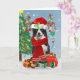 Cartão Cão Border Collie na neve com presentes de Natal